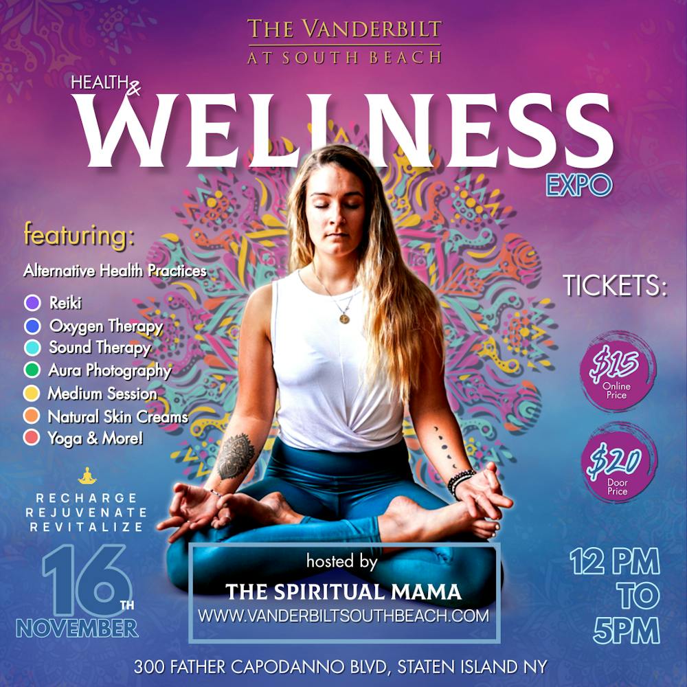 Join us on November 16th, from 12 pm to 5 pm to step into a world of healing and transformation at The Vanderbilt Health Wellness Expo, hosted by The Spiritual Mama. Experience energy alignment through Reiki โจ, refresh your spirit with Sound Therapy ๐, and capture your essence with Aura Photography ๐ธ. Dive into Wellness hydration for a boost of vitality or explore insights through Medium Sessions ๐ฎ. Soothe your body with calming Natural Body Creams ๐งด and wrap up your day with a restorative Yoga ๐งโ๏ธ session. Enjoy hors d'oeuvres ๐ฝ๏ธ and sip refreshing drinks from our Cash Bar ๐ธ. Come rejuvenate, and revitalize your mind, body, and soul at this transformative event. ๐ฟ